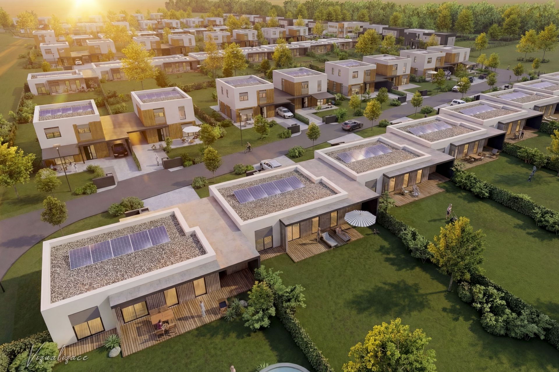 Domy jsou navrženy jako nízkoenergetické – splňují požadavky energetické třídy B.